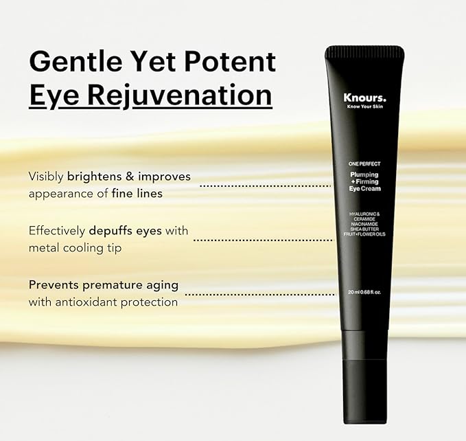 Knours. One Perfect Firming + Plumping Eye Cream with Hyaluronic & Ceramide Niacinamide Shea Butter Fruit + Flower Oils for a refreshed, Smooth Look, New & Improved Formula 20ml/0.68 fl. oz.