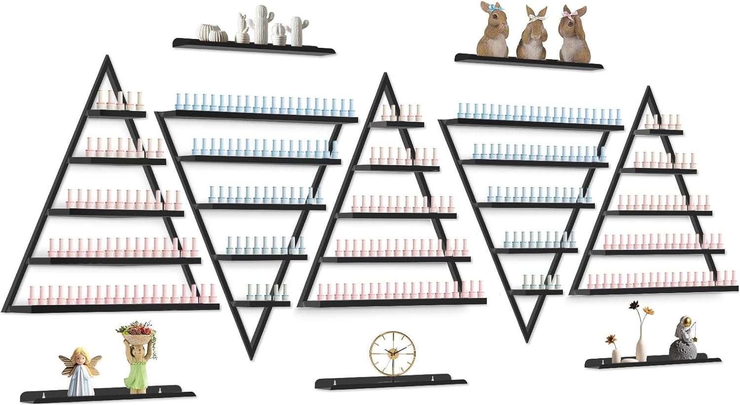 - 【Large Capacity & Save Space】: Simple triangle and multi-layer design to meet both of your aesthetic and storage needs. Each tier can hold two rows of nail polish, making storage convenient and help you save lots of space and time. Reasonable use of wall space, no more worrying about messy table.