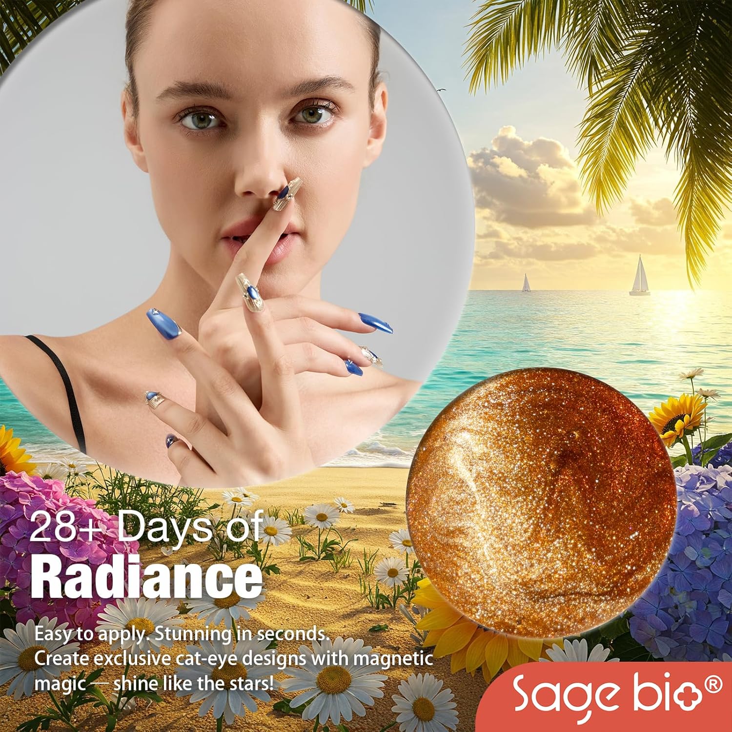 - Captivating 3D Cat Eye Effect: Create mesmerizing, multi-dimensional designs with SAGEBIO's cat eye gel polish. The included magnet stick helps you achieve a dazzling 3D magnetic effect that shifts beautifully with light.