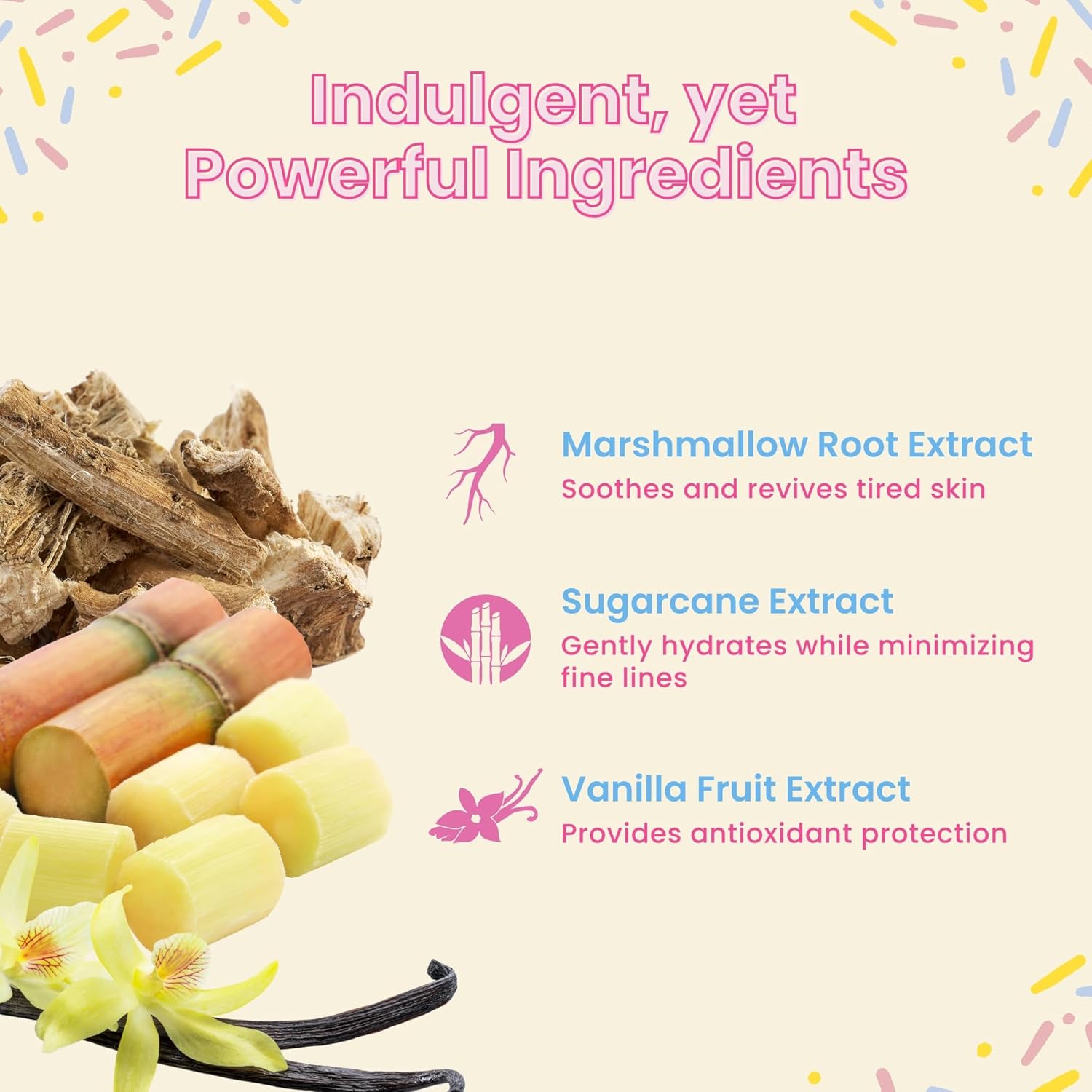 - FUN SPRINKLE DESIGN: Add a playful twist to your skincare routine with these sprinkle-decorated gel eye patches. The frosting-inspired scent transforms your under-eye care into a sweet, relaxing treat.