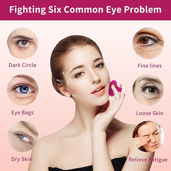 - 【Quiet & Eye Massage Tool】Eye massager can reduce the dark circles and puffiness under the eyes caused by late night or insomnia, improve the sagging skin and fine lines under the eyes, help restore the delicate skin under the eyes, relieve eye fatigue at work, solve a variety of eye problems, eye care tools with 6000 ~ 8000 vibrations / minute, so that your facial skin to keep in motion. Ultra-quiet design allows you to use at home or in the office at any time.