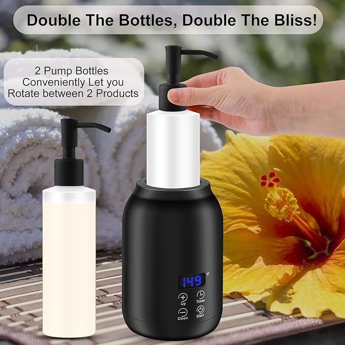 - 【Multi function and multi-purpose】 Massage oil heater is suitable for heating various massage oils, such as body cream, face cream, shower gel, shampoo..... Heating massage oil can improve its fluidity, volatility, and permeability, making it particularly suitable for enhancing the comfortable experience of massage, hydrotherapy, and bathing