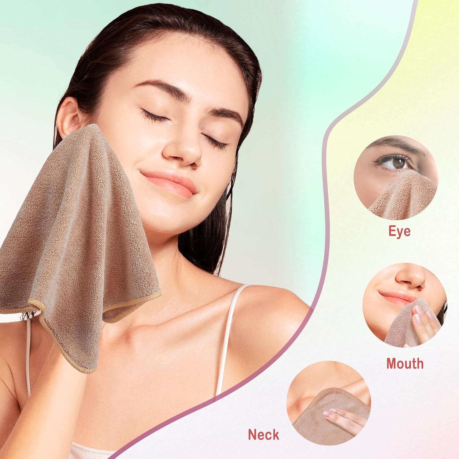 Nugilla Makeup Remover Cloth 12 x 12 Inch, Reusable Makeup Remover Towels for Washing Face, 6 Pack Washable Microfiber Face Cloth Fast Drying Washcloth, Brown