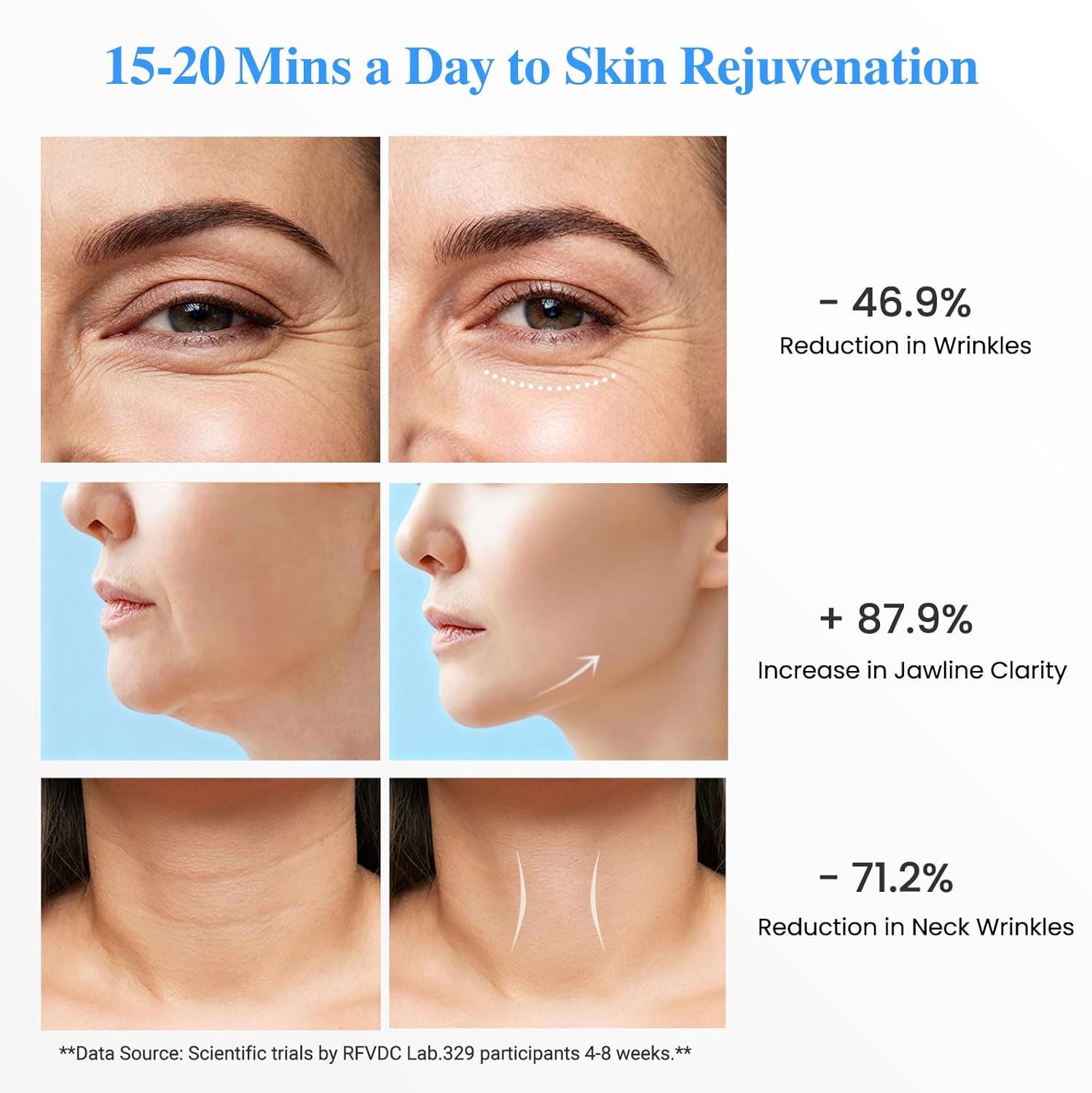- 【Multifunctional 7 LED skin care】Our RFVDC beauty glow facial neck contouring massager tool has 7 LED lights therapy,hot/cold compress,and vibration mode.Different modes combined with different lights improve the effect of household skin care to professional salon level, rejuvenate and glow more scientificly and effectively.