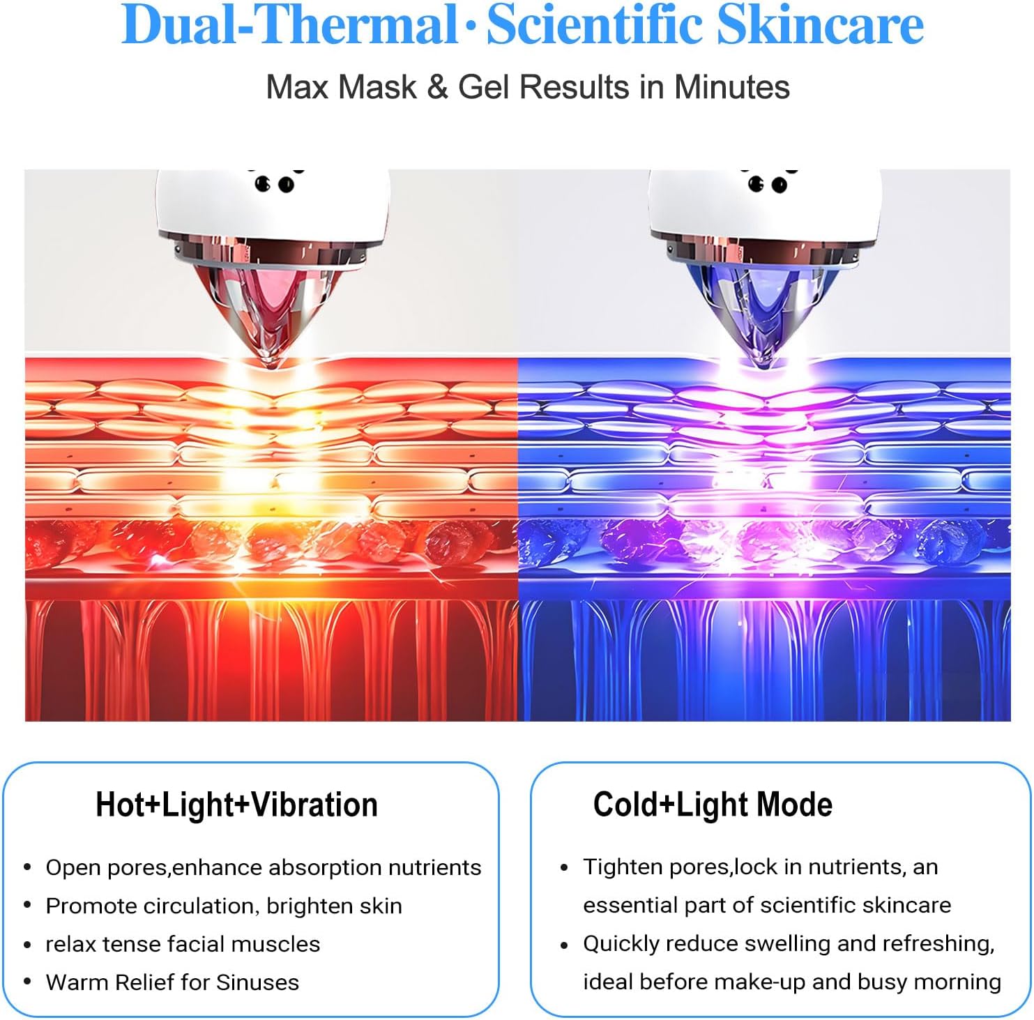- 【Cold and Hot compress, unlock the secret of skin care】Hot mode: open pores, strongly boost the absorption rate of skin care products. Cold mode: instantly locks in moisture and nutrients, minimizes pores. One hot, one cold, leading and locking, forming a skincare closed-loop, achieving more with less effort, effectively reducing skin lines, redness,rough, oily, dullness.