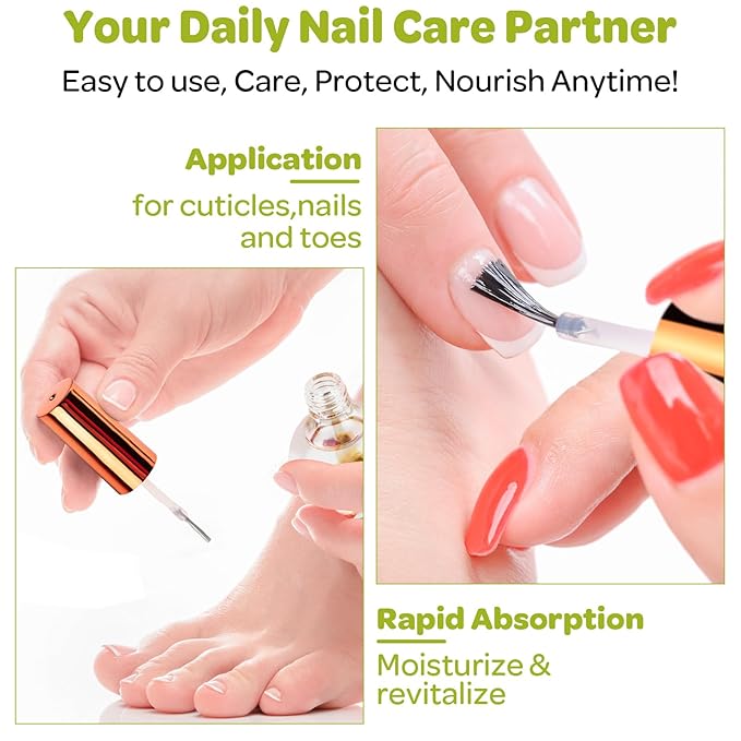- Easy to Use: Simply brush on and massage for healthy, hydrated nails and cuticles! A simple and effective way to care for your nails and cuticles. Handy and convenient for professionals and home users alike. This unique formula nourishes and moisturises nails, providing deep care for your DIY poly nails and cuticles
