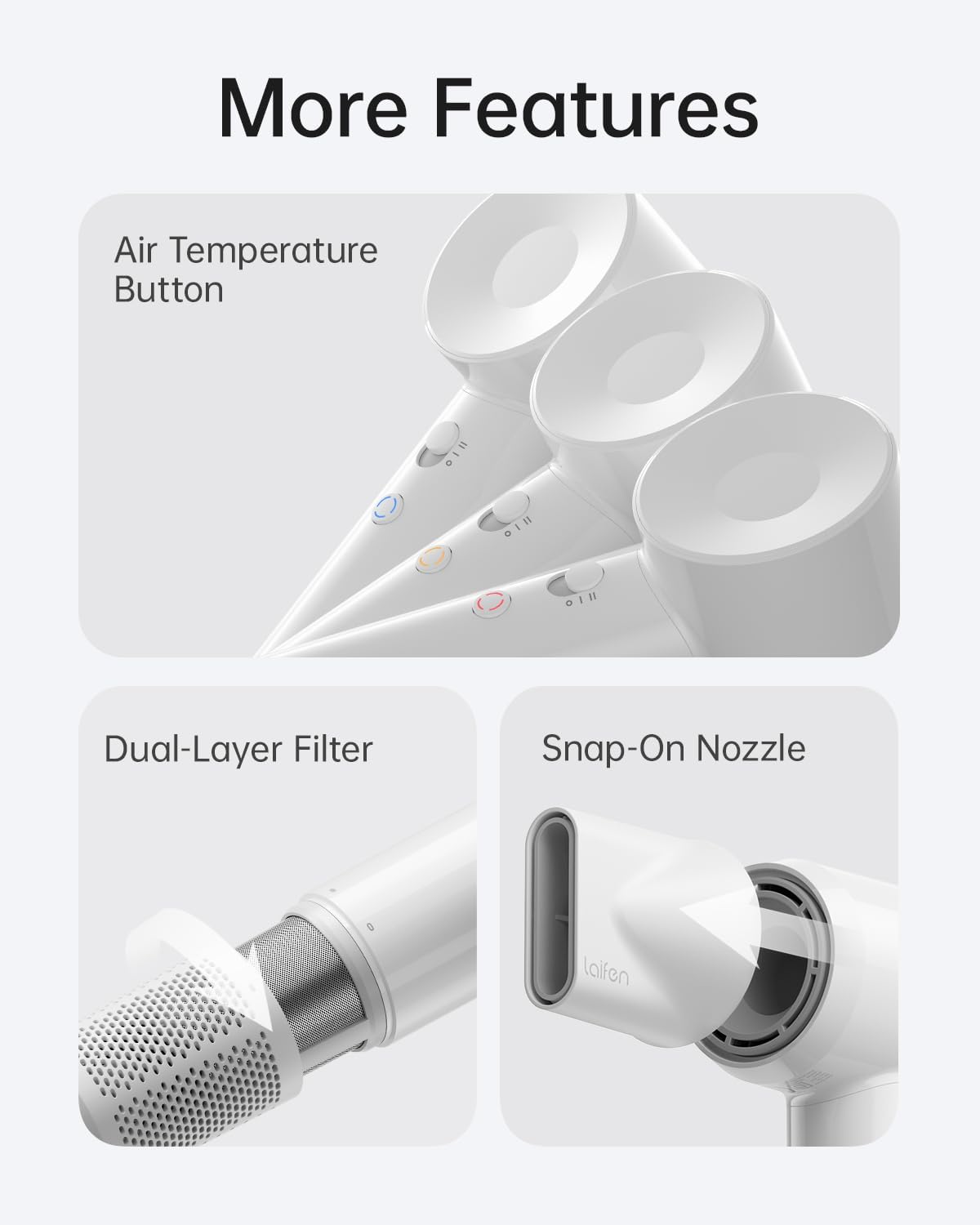 - Packed with Features:The SE Lite bring stylish new features to Laifen's line of high-speed hair dryers like the LED Air Temperature button and dual-layer filter