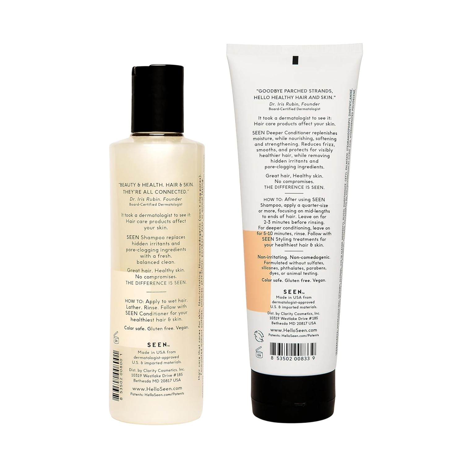 SEEN Shampoo & Deeper Conditioner Bundle - Scented, Non-Comedogenic & Hair Care - Dermatologist-Developed, Safe for Sensitive & Acne-Prone Skin