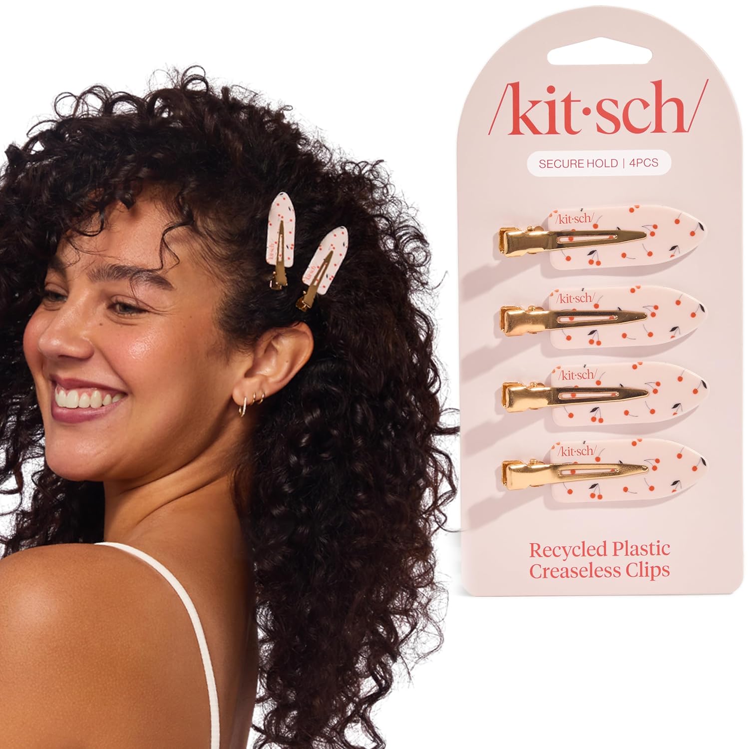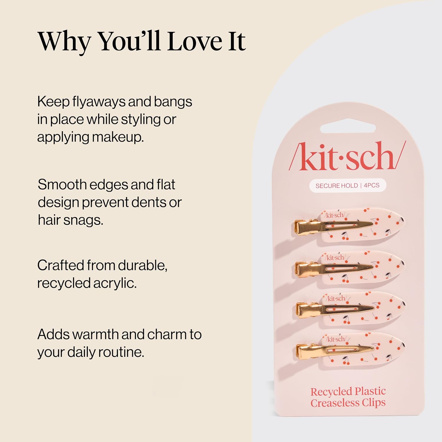 Kitsch Creaseless Hair Clips for Women - No Crease, No Bend Hair Clips for Styling, Bangs, Makeup Application, Face Wash - Recycled Acrylic - Cherry Print | Ideal Gifts for Women, 4pcs