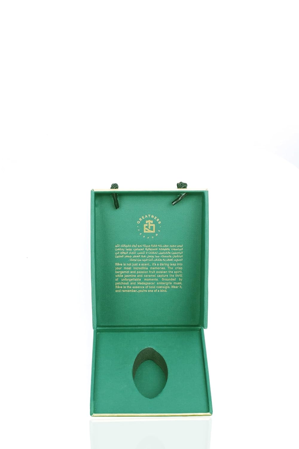 - Luxurious Packaging: Housed in a sleek glass bottle with an elegant cap, Rêve is presented in a refined, intricately designed box, making it an ideal personalized gift for any occasion. Whether you're looking for ladies' perfume, perfume for men, or perfume for women, its stunning presentation adds a touch of luxury.
