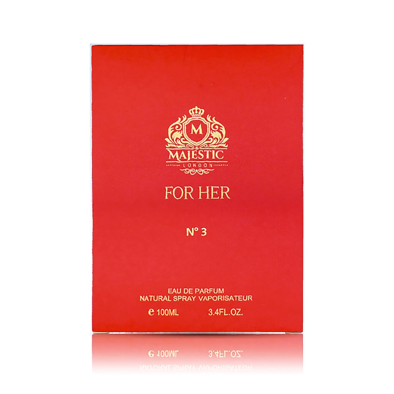 - ELEGANT DESIGNER ESSENCE: Majestic For Her No3 exemplifies the art of designer perfumes, blending oud perfumes for women with the warmth of amber perfume for women. This perfume is ideal for those who appreciate a refined and long-lasting fragrance.