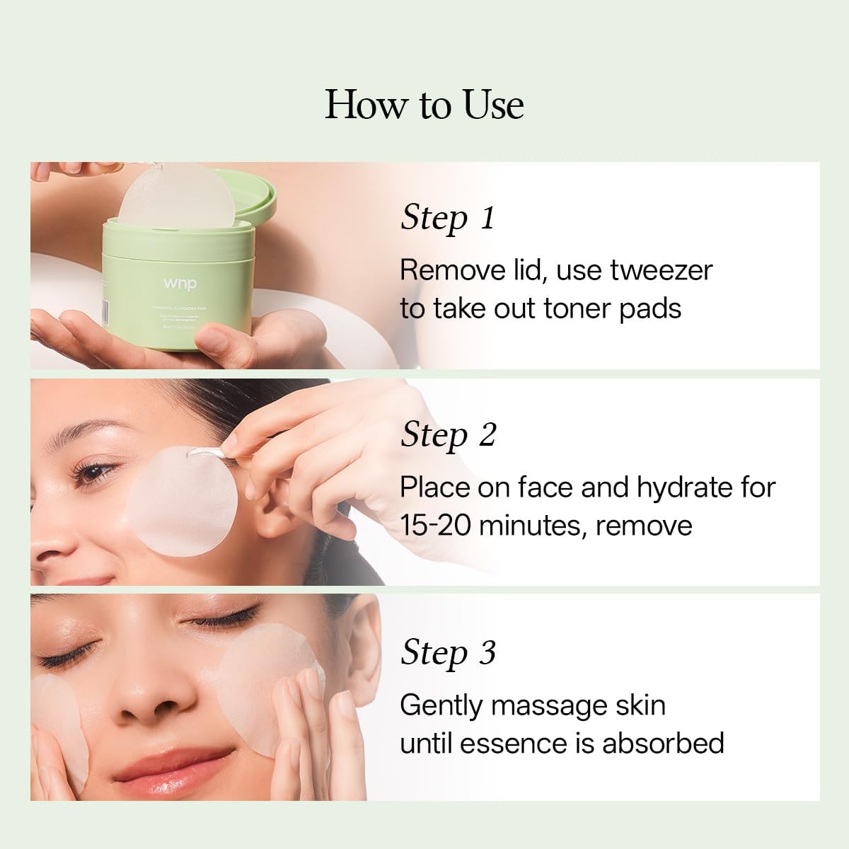 - Recommended Uses For Product : Apply the pad to areas needing intensive soothing and hydration for 15-20 minutes, then remove., Gently massage and pat the skin until the remaining essence is fully absorbed., Open the container lid and use the provided tweezers to remove a pad. Apply the pad to areas needing intensive soothing and hydration for 15-20 minutes, then remove., Gently massage and pat the skin until the remaining essence is f… See more