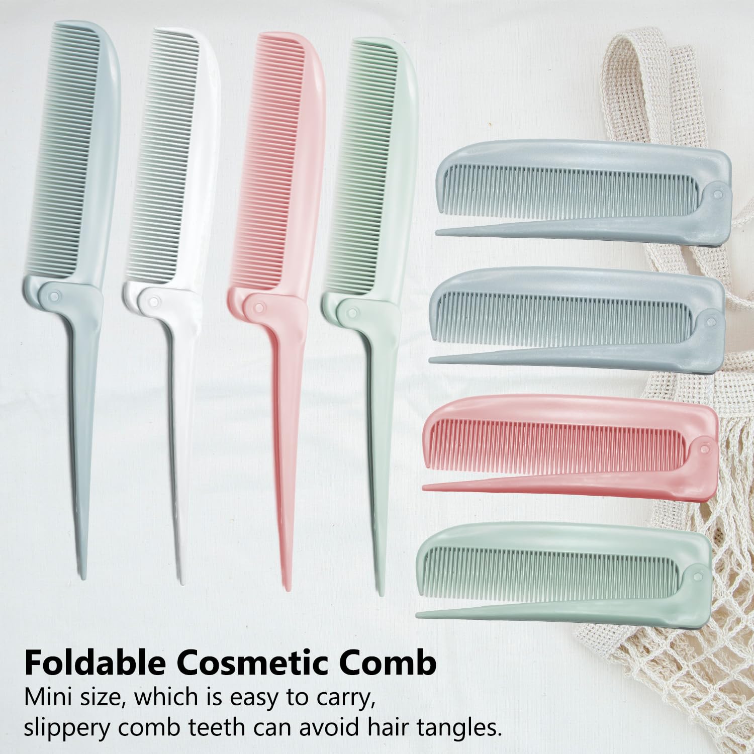 4 Pack Hair Parting Combs, Hair Styling Beauty Tools, Rat Tail Combs, Foldable Comb for Travel, Stylist (White,Pink,LightBlue,LightGreen)