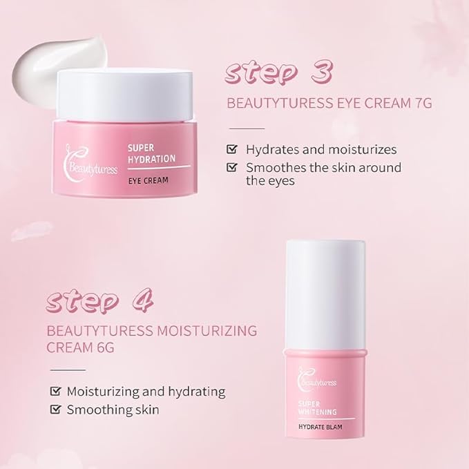 - : The Beautyturess Skin Care Set contains all of your skincare favourites in a TSA-ready travel-sized kit. The kit includes a Cleanser (30ml), Hydrating Balm (6g), Moisturizer (25ml), Eye Cream (7g) and Night Cream (15g).