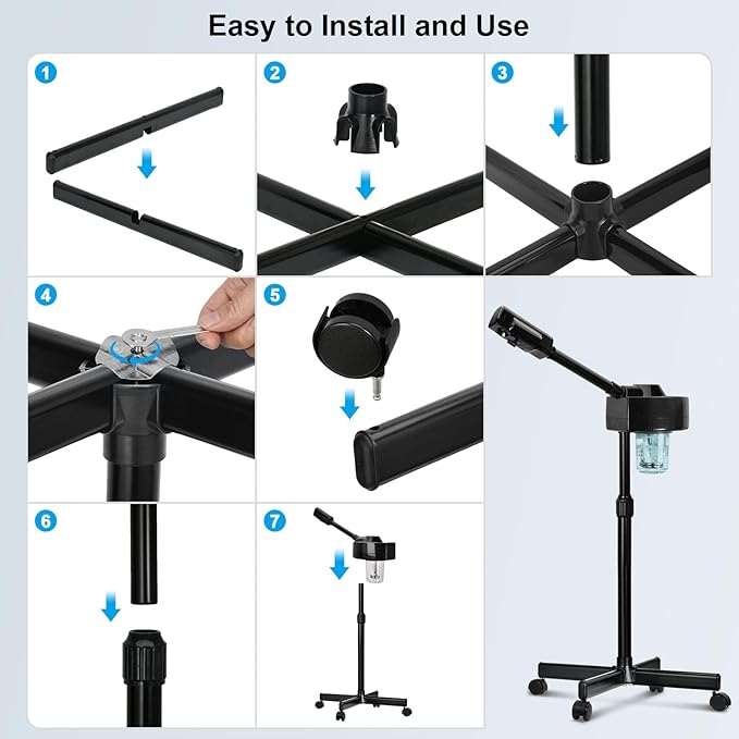 - 【Easy to Use】The nozzle can rotate freely 360 degrees, strong adjustable metal stand and flexible wheels allow you to use easily(Height is adjustable between 35.43” to 49.61”).
