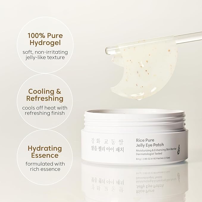 - 100% Pure Hydrogel with Cooling Effect: Soft, non-irritating hydrogel patches with a jelly-like texture provide a refreshing cooling sensation while delivering intense hydration to the delicate skin around the eyes.