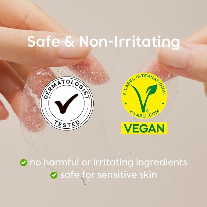 - Hydrogel Eye Patches with Cooling Effect: Soft, non-irritating jelly-like texture provides a refreshing, cooling sensation while delivering deep hydration to the delicate under-eye area.