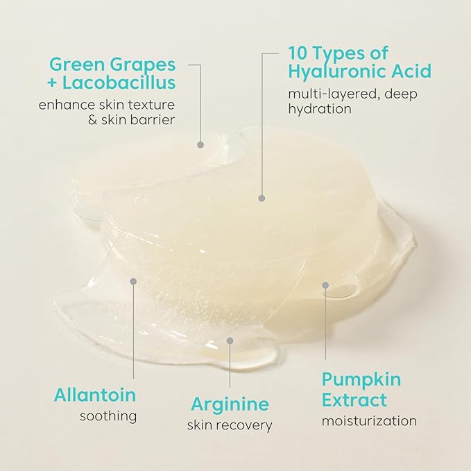 - Deep Hydration with 10 Types of Hyaluronic Acid: Infused with 10 different molecular sizes of hyaluronic acid to ensure thorough hydration from the skin’s surface to its deepest layers.