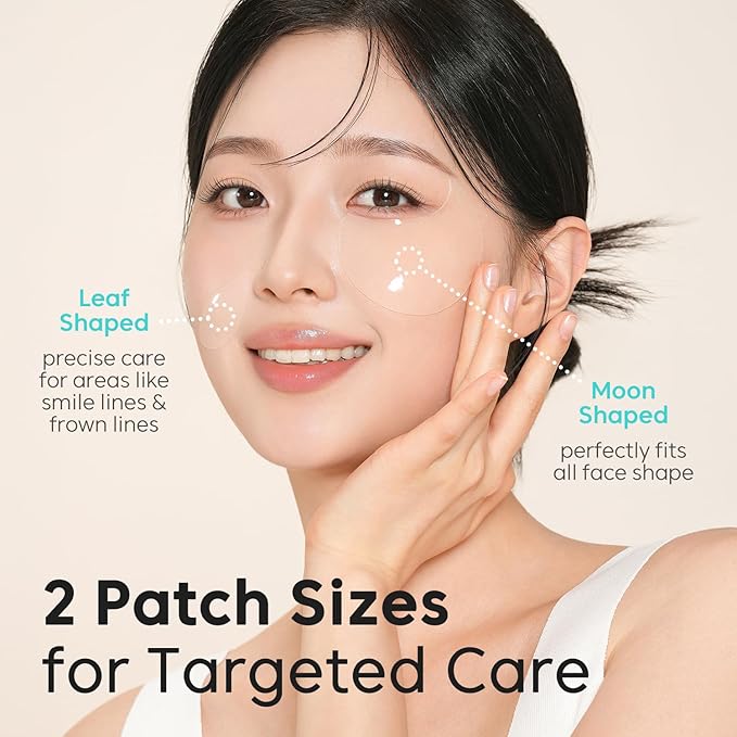 - 2 Patch Sizes for Targeted Skincare: Includes moon-shaped patches for under eyes and leaf-shaped patches for precise care on smile lines, frown lines, neck, and nasolabial folds