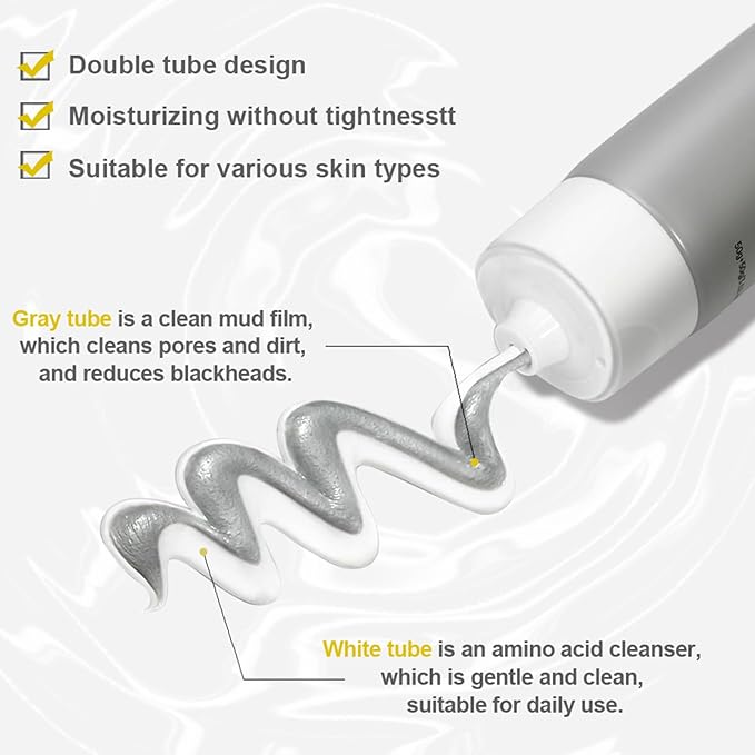 - 【DUAL-ACTION DEEP CLEANSING】 – The amino acid cleanser features a black-and-white formula: the black cream deeply purges impurities, excess oil, and acne-causing residue, while the white cream refines pores and balances sebum. Gentle yet effective, it leaves skin refreshed without stripping moisture or causing irritation.