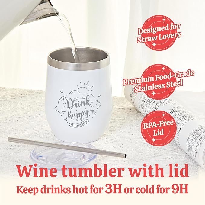 - Stainless Steel Wine Tumblers: This stainless steel cup is made of food-grade stainless steel, which is safe and healthy; The design is simple and fashionable, and it feels comfortable to the touch; Keeping 24h for cold & 12h for hot, keeps your drinks at their best at all times. Whether it's for personal use or as a gift, it's a good choice,best gifts for women