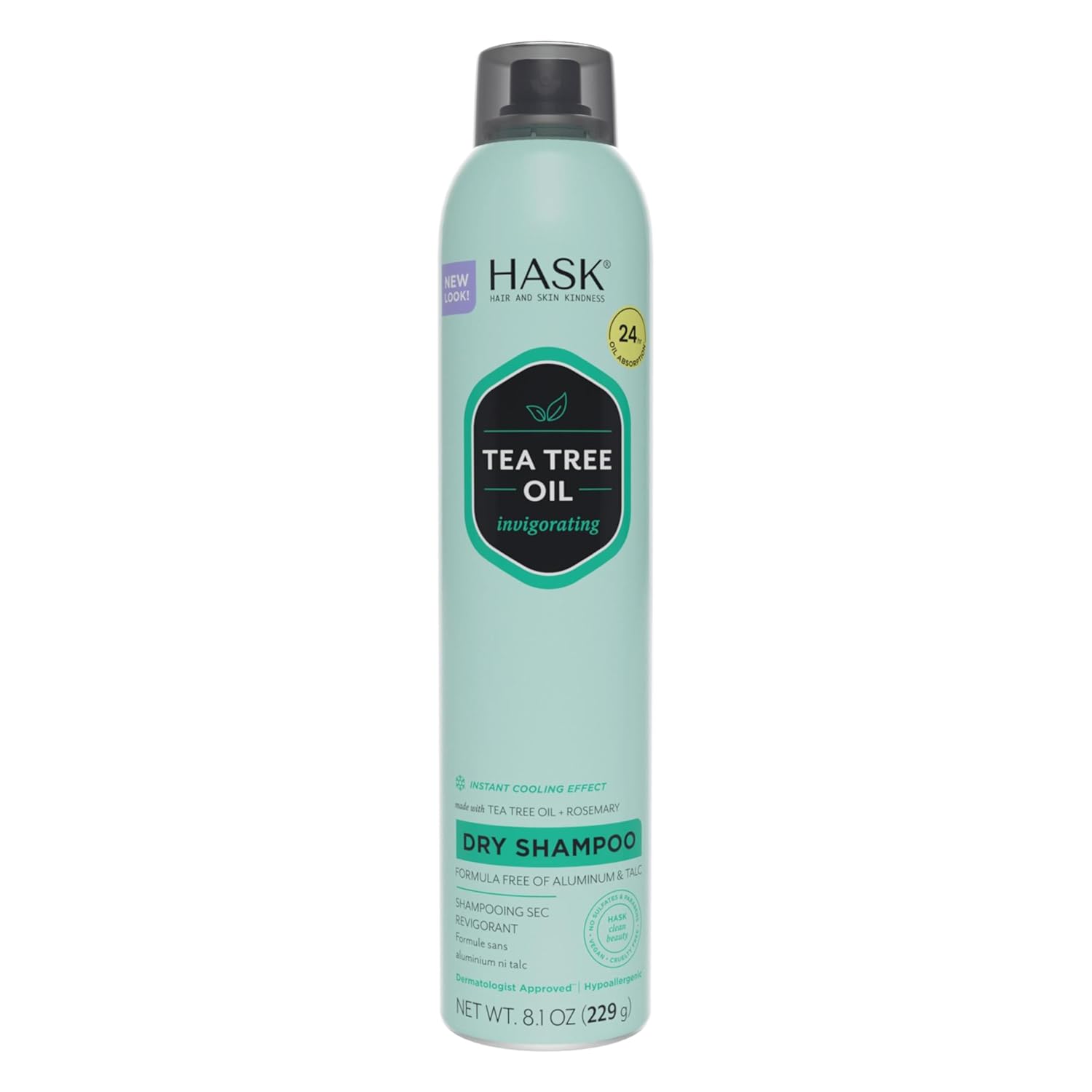 HASK Tea Tree Invigorating Dry Shampoo for Oily, Itchy Scalps – Absorbs Oil, Rebalances Scalp, Hypoallergenic, No Sulfates or Parabens, Cruelty-Free – 8.1oz