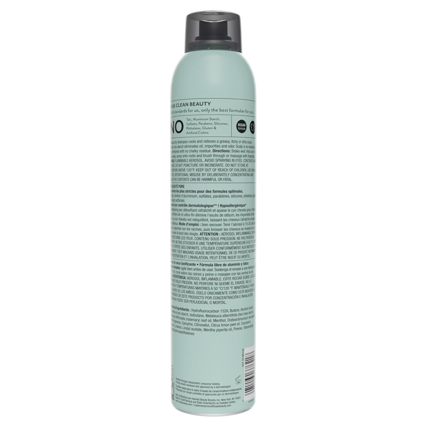 - Free Of | No sulfates, parabens, phthalates, silicones, gluten, artificial colors, aluminum starch, or talc; vegan, cruelty-free, and color-safe formula