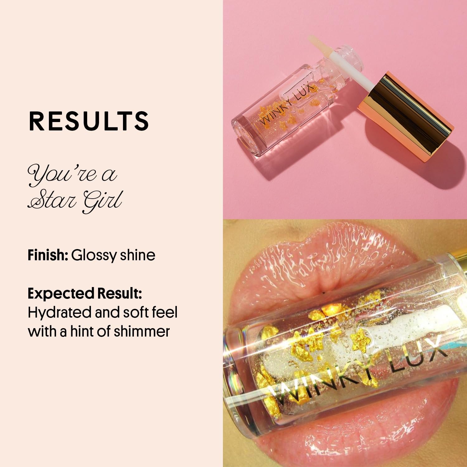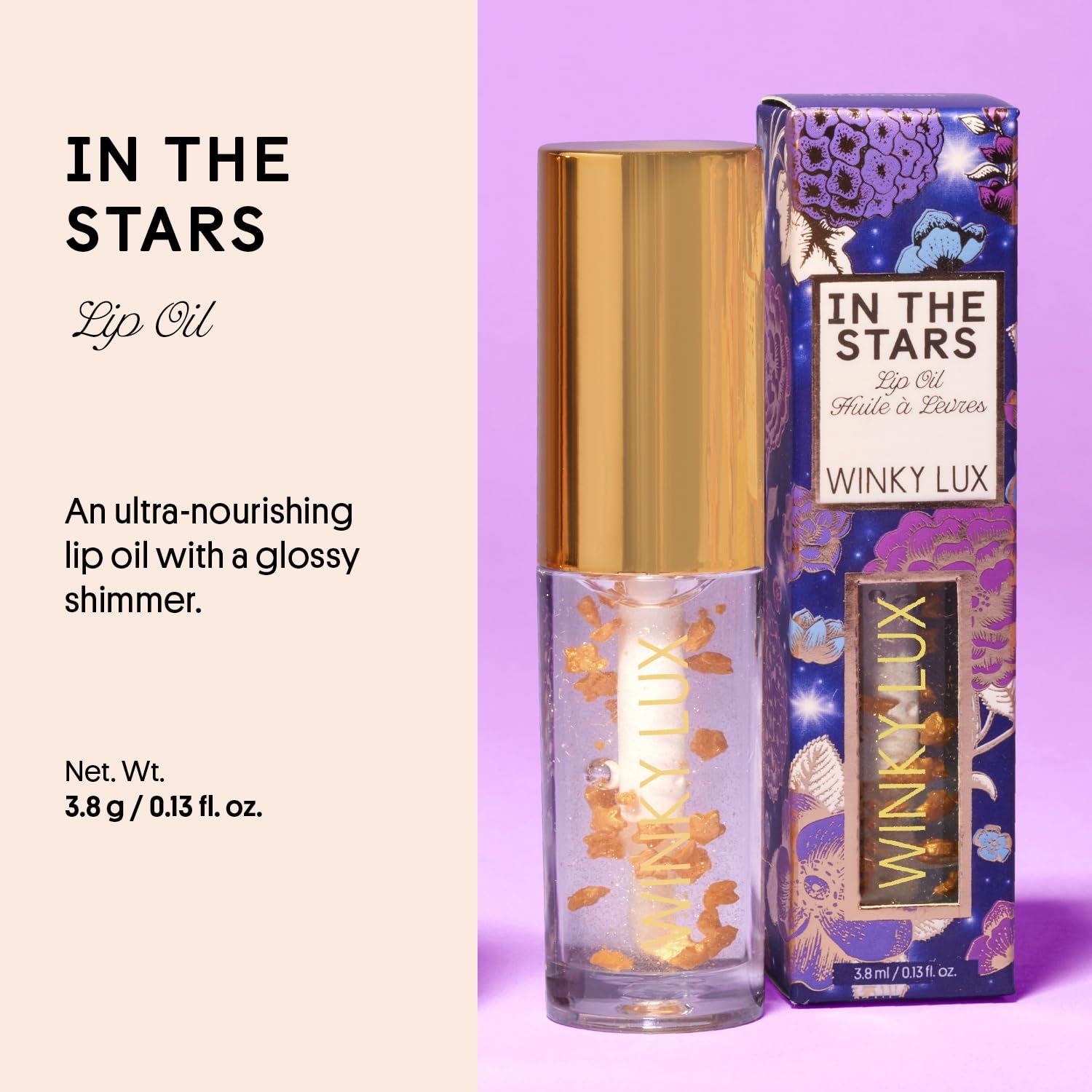 Winky Lux In The Stars Lip Oil - Silky Shine & Hydrating Non Sticky Lip Gloss, Infused with Golden Stars & Nourishing Jojoba Oil, with Soft Vanilla Scent
