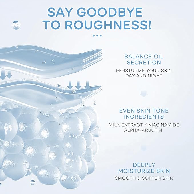 - [Gentle & Soothing]: Milk face skincare set with high quality milk essence, the formula is mild and non-greasy, suitable for all skin types, especially sensitive skin. The nutrients in the milk facial care kit help relieve redness, and provide a gentle protective barrier to strengthen the skin's resistance.