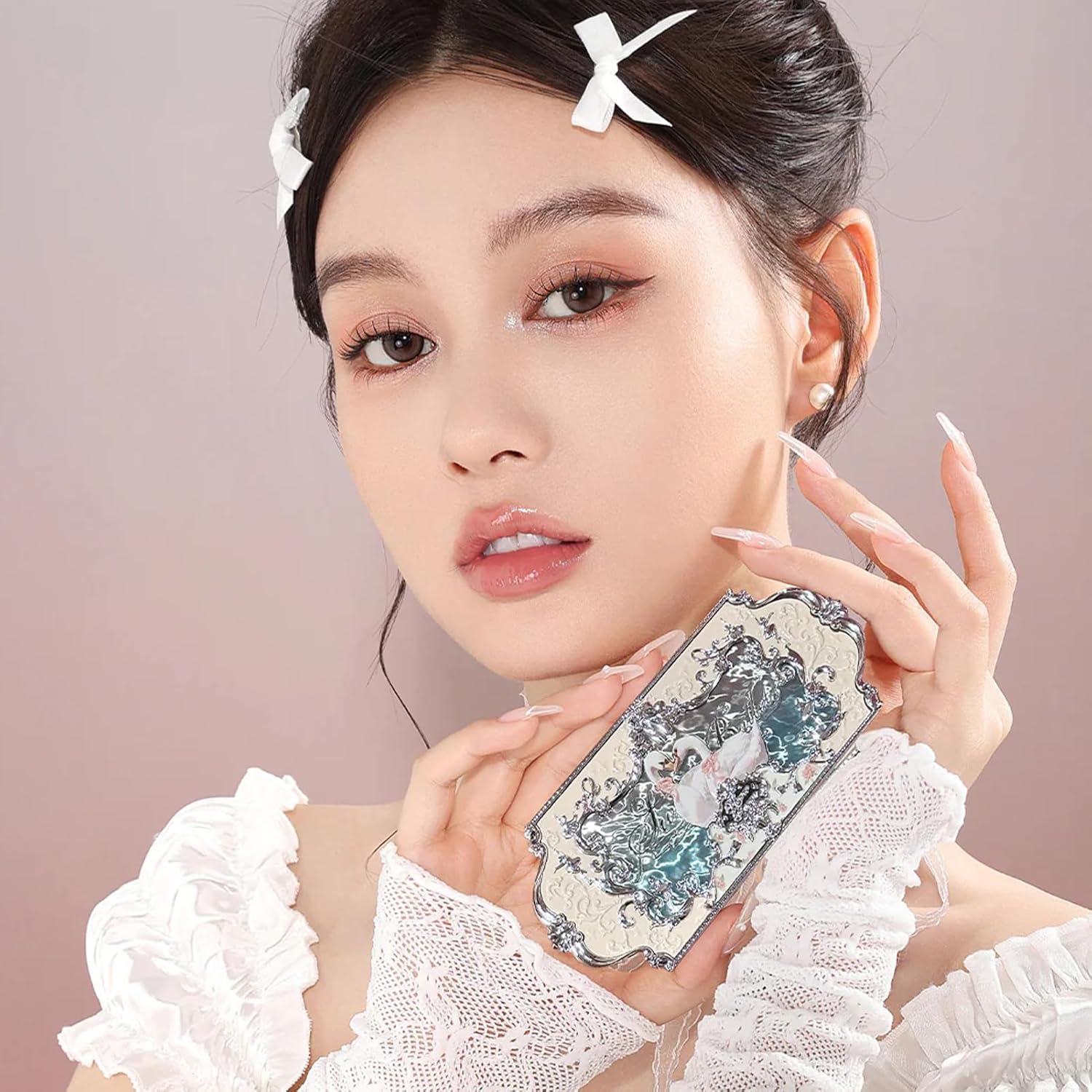 - Portable Travel-Size: Ballet-inspired case with silver detailing,engravings of ballet skirts/slippers,water ripple & oil-painted swan accents + full mirror.Compact,lightweight case for on-the-go glam