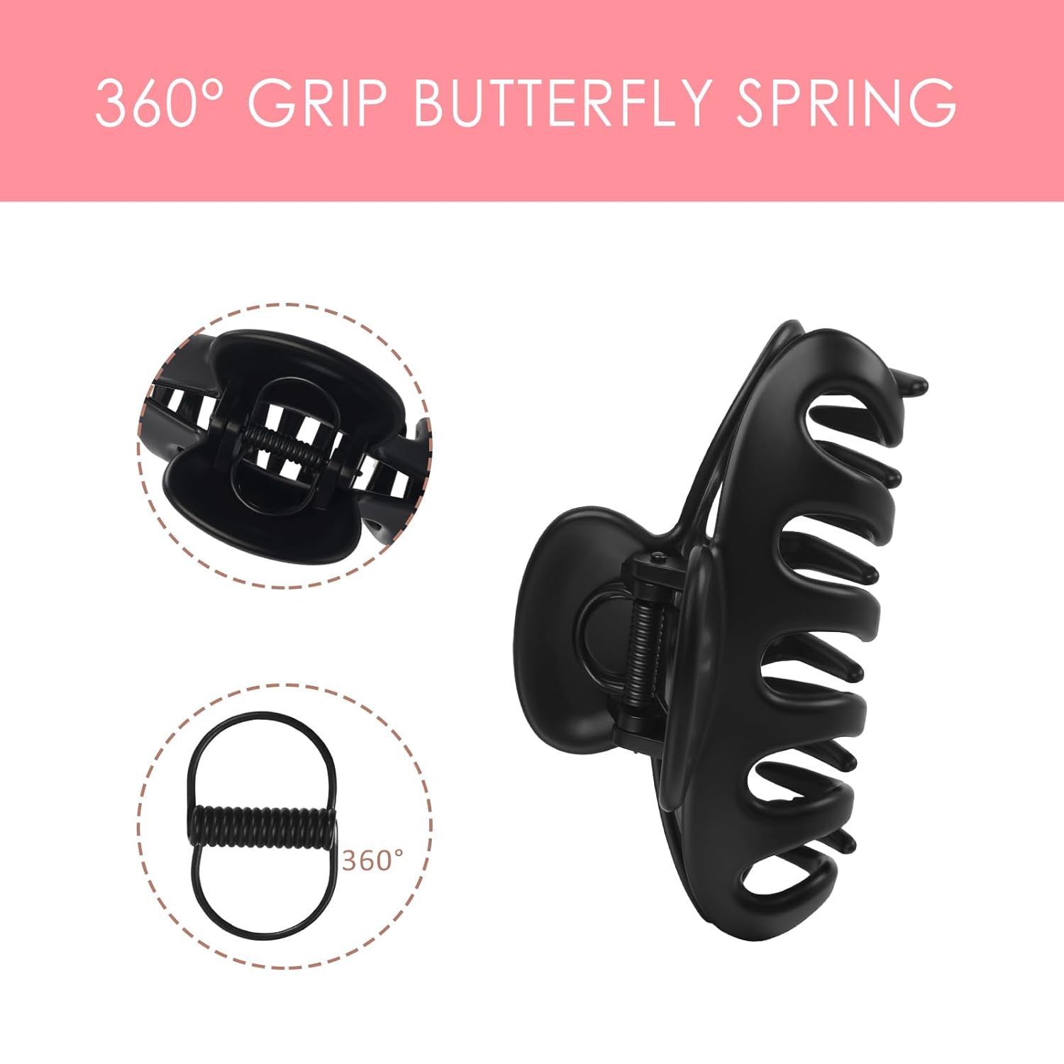 Claw Clip for Women, 4.3" Large 360° Grip Butterfly Spring Hair Clip, Matte Claw Clips 2 Pack - Strong Hold Banana Clips, Durable for Thick Hair, Black & Tortoise