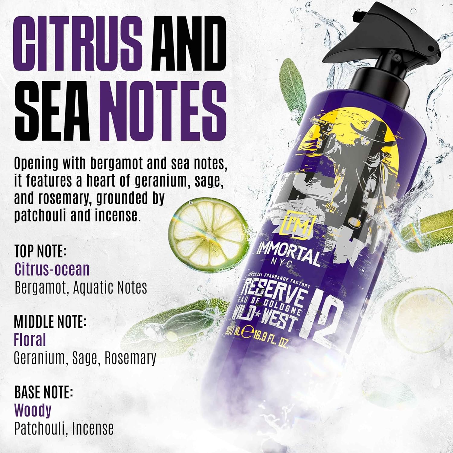 Immortal NYC Reserve 12 Wild West, After Shave Spray Body/Face Men's Cologne,17oz, Exclusive Barbers, Softens Skin, Refreshes, Disinfects and Relieves Face and Skin, Moisturizing Formula After Shaving