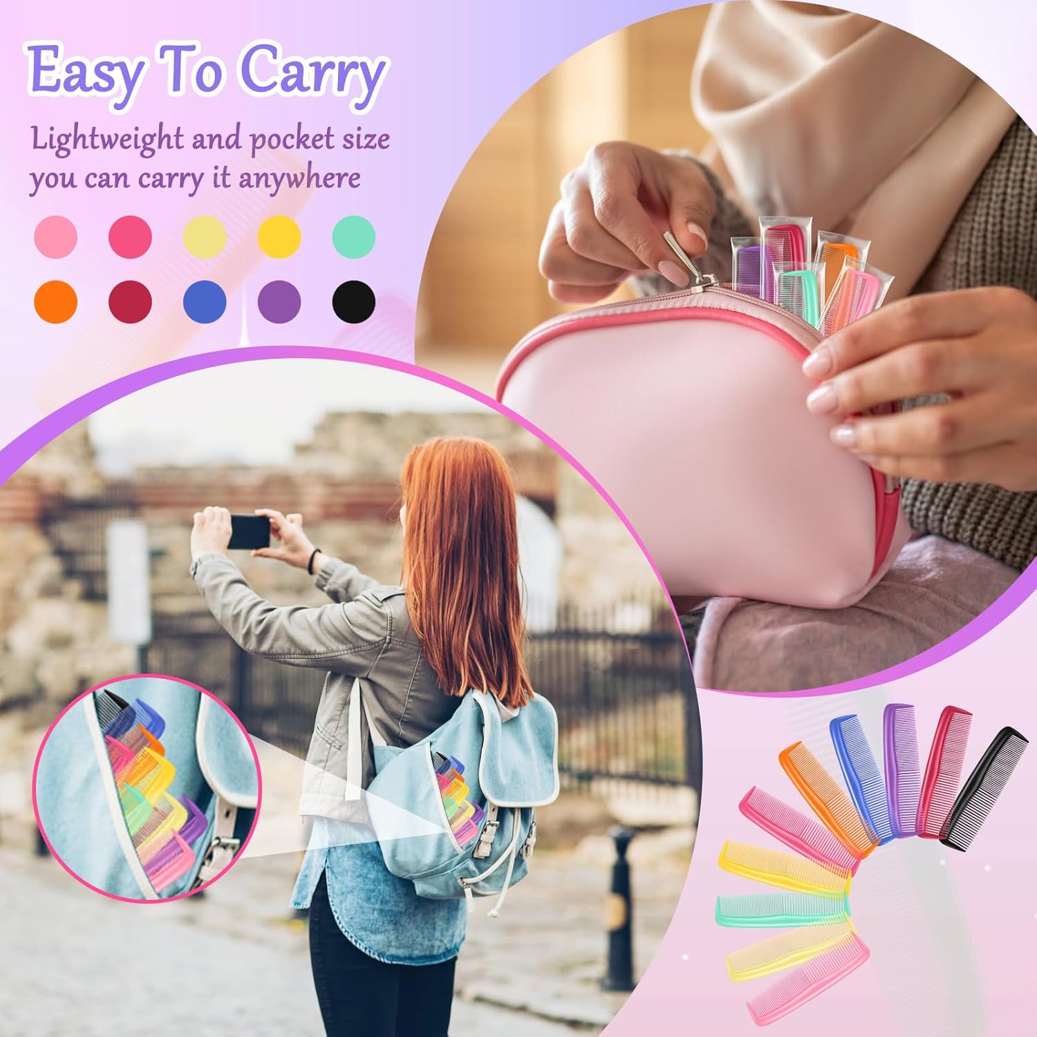 HOFASON 500 Pack Combs Bulk for Women Kids, Individually Wrapped Plastic Pocket Hair Combs Set Small Bulk Travel Combs for Styling, Homeless, Hotel, Shelter, Nursing Home, Charity, 10 Colors