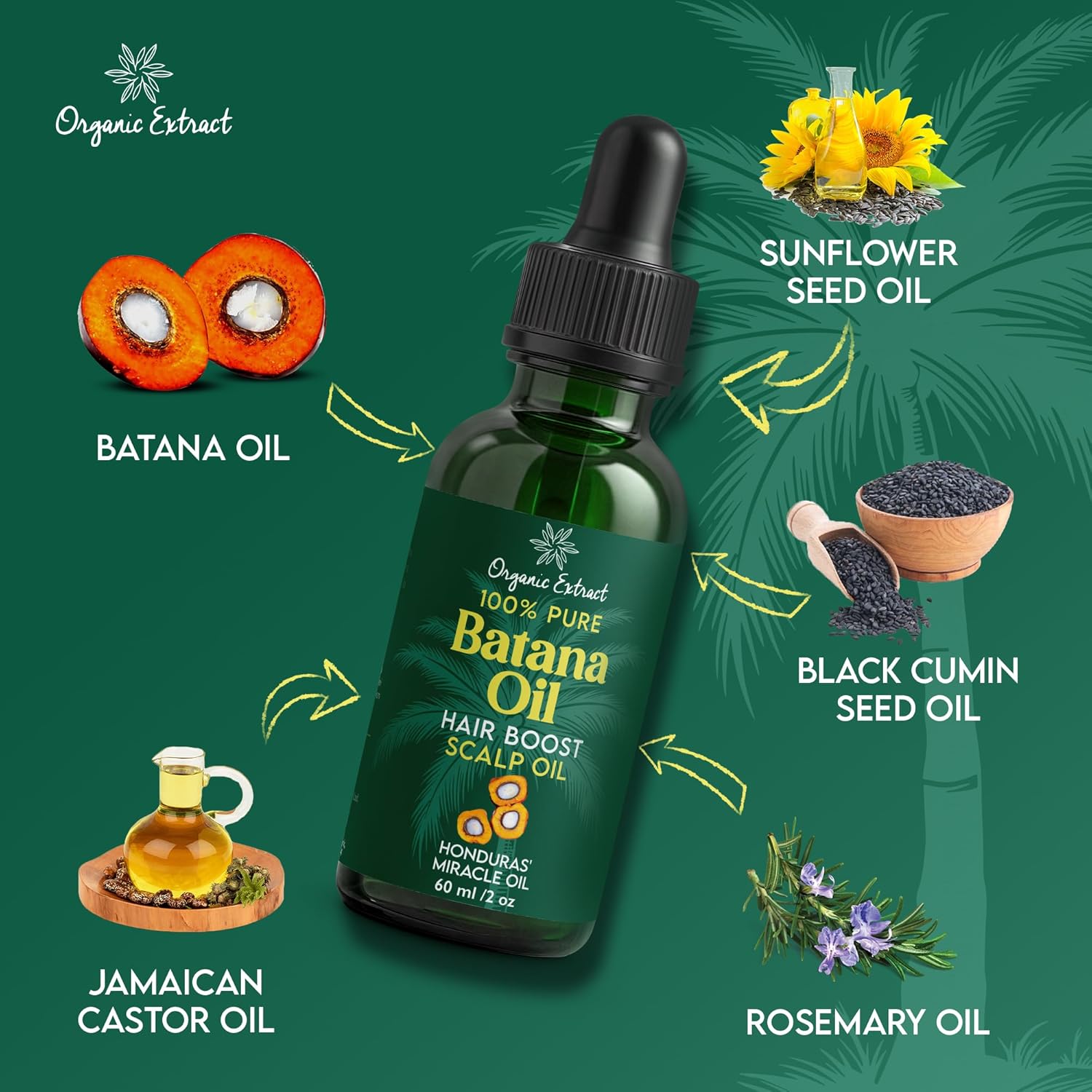 Batana Oil for Hair & Scalp – 2 fl oz / 60ml – Deep Hydration & Frizz Control – Pure & Natural Moisturizing – Lightweight, Nourishing Oil for All Hair Types – For Men & Women