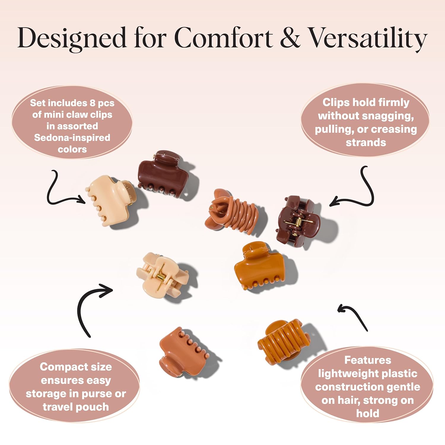 Kitsch Small Hair Clips for Women and Girls – Mini Claw Clips – Hair Accessories – Daily Styling, Recycled, | Ideal Gifts for Women Sedona – 8pc Set
