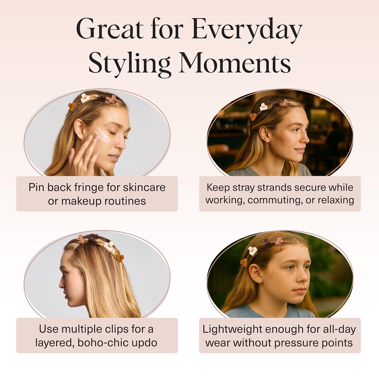 - SMALL HAIR CLIPS FOR EVERYDAY STYLING: Perfect for bangs, layers, or half-up styles. These lightweight claw clips hold the hair in place without pulling or snagging.