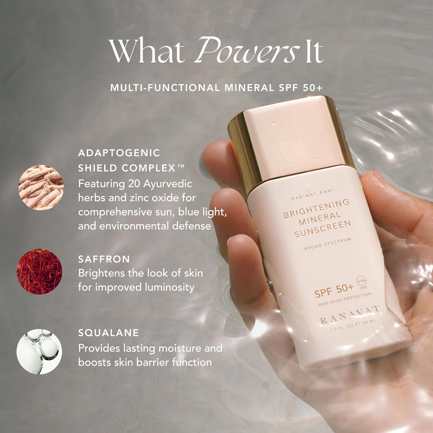 RANAVAT Brightening Mineral Face Sunscreen - Broad-Spectrum SPF 50 Mineral Sunscreen with Zero White Cast - Boosts Radiance & Helps Protect Against Signs of Aging - Safe for Sensitive Skin (50 ml)