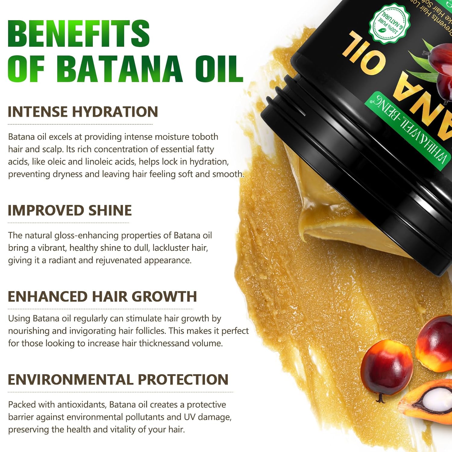 - Batana Oil for Hair Growth: Our Batana Oil is rich in protein, vitamins, and fatty acids.Providing valuable and essential nutrients for hair and scalp. Very suitable for split, dry, and sparse hair. Batana oil can also stimulate blood circulation and promote hair growth. Any type of hair can become shiny, sturdy, and dense.