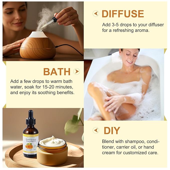 - Enjoy a Calming Atmosphere - Transform any room into a serene space with frankincense oil for home diffuser. Its grounding resinous notes is incredibly relaxing, making it ideal for meditation or yoga.