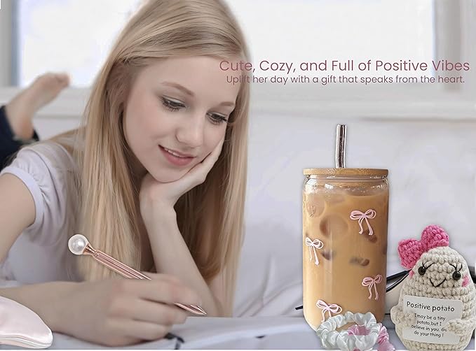 Pink Birthday Gifts for Teen Girls,Inspirational Gifts Basket for Her, Cute Bow Theme Birthday Gifts for Women, Friendship Gifts for Daugther/Sister/Friend (Pink &Bow)