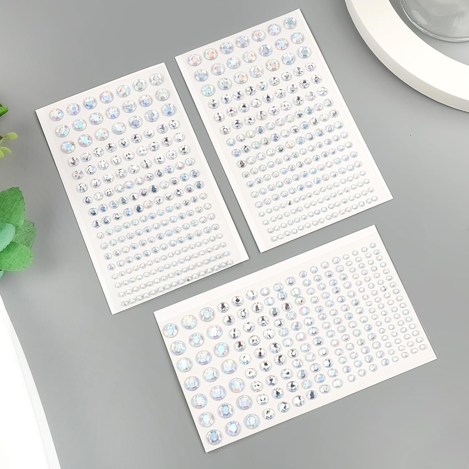 - Wide Applications: These self-adhesive face gems pearl rhinestones stickers are sure to enhance your makeup, crafts, and hairstyle with their nice color and semi-gloss shine. Note: Please keep them properly after use and away from children to avoid accidentally being eaten. Make sure the place where you stick is clean and free of dust, otherwise, it will affect the adhesion. The flat surface will stick on better