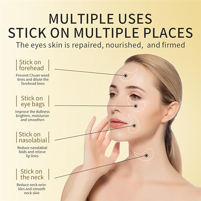 - 【24K Gold Eye Mask】: Infused with 24K active gold ingredients, these eye patches deeply repair and rejuvenate the delicate eye area, reducing fine lines, crow's feet, dark circles, puffiness, and signs of tiredness. The scientifically designed shape and material of the eye masks make them perfect for use under the eyes, on the forehead, chin, neck, and more, offering versatile skincare benefits