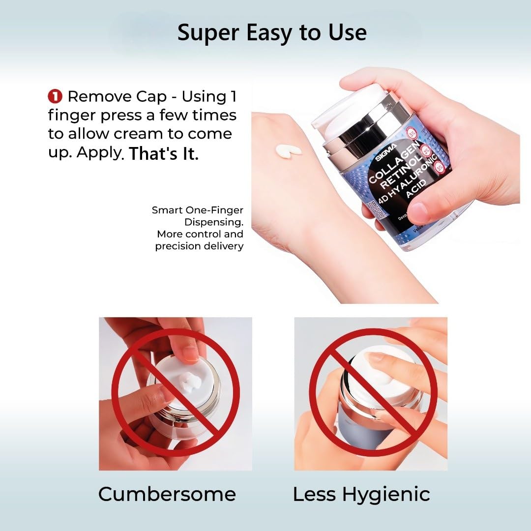 - ⚡ POTENT RETINOL DELIVERY SYSTEM: Advanced anti-aging moisturizer with precision-balanced 3% Retinol formula supports skin renewal and smoother appearance. Features exclusive touchless finger dispensing system for hygienic, controlled application