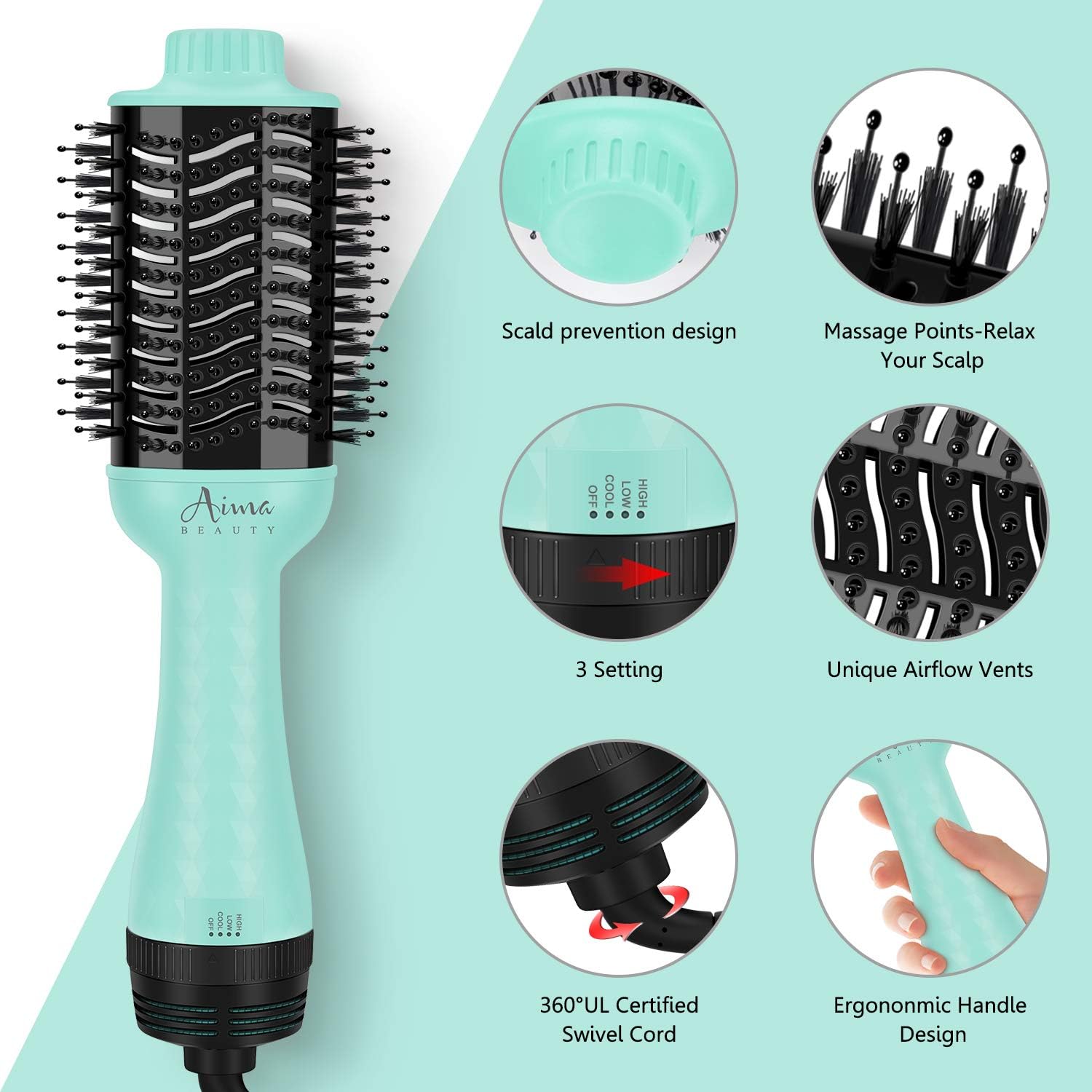 - ALL-IN-ONE FUNCTION BRUSH: Do you know how it can be tricky to hold a blow dryer in one hand and use your brush to style your hair with the other? Aima Beauty hot air brushes aim to make that how help process easier and easier. They are essentially 4-in-1 tools that combine the functions of a blow dryer brush, a hair straightener, and a hair curler. So our hot air brushes are great for those who change hairstyles frequently and those who need to look perfect for a special occasion