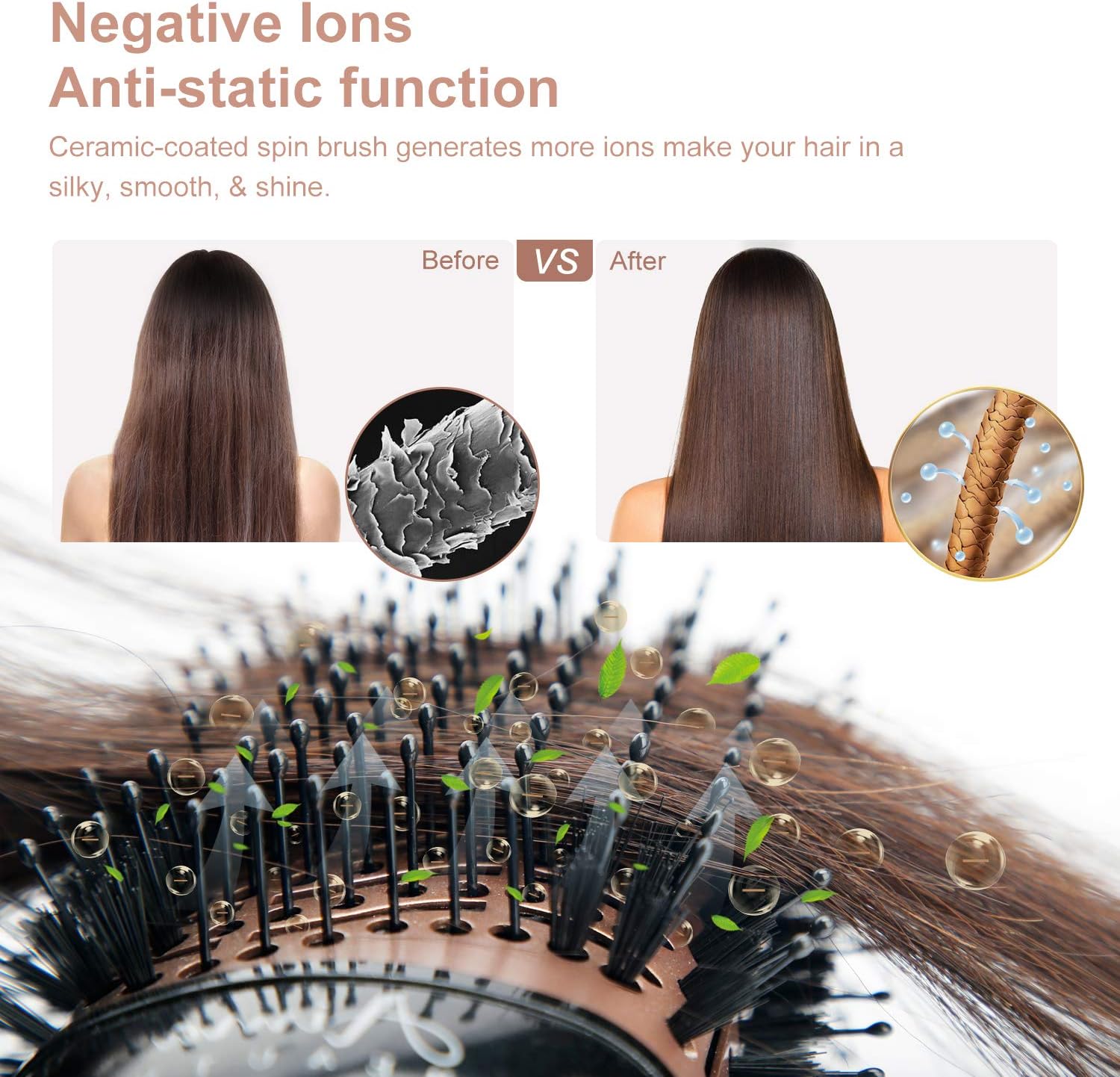 - CERAMIC COATING & ION TECHNOLOGY: The Ceramic Coating protects your hair from over-styling with even heat distribution that penetrates hair quickly from the inside out for less damage. The negative ions released by the hot air brush can increase the moisture of the hair; this will help condition your hair and nourish damaged hair