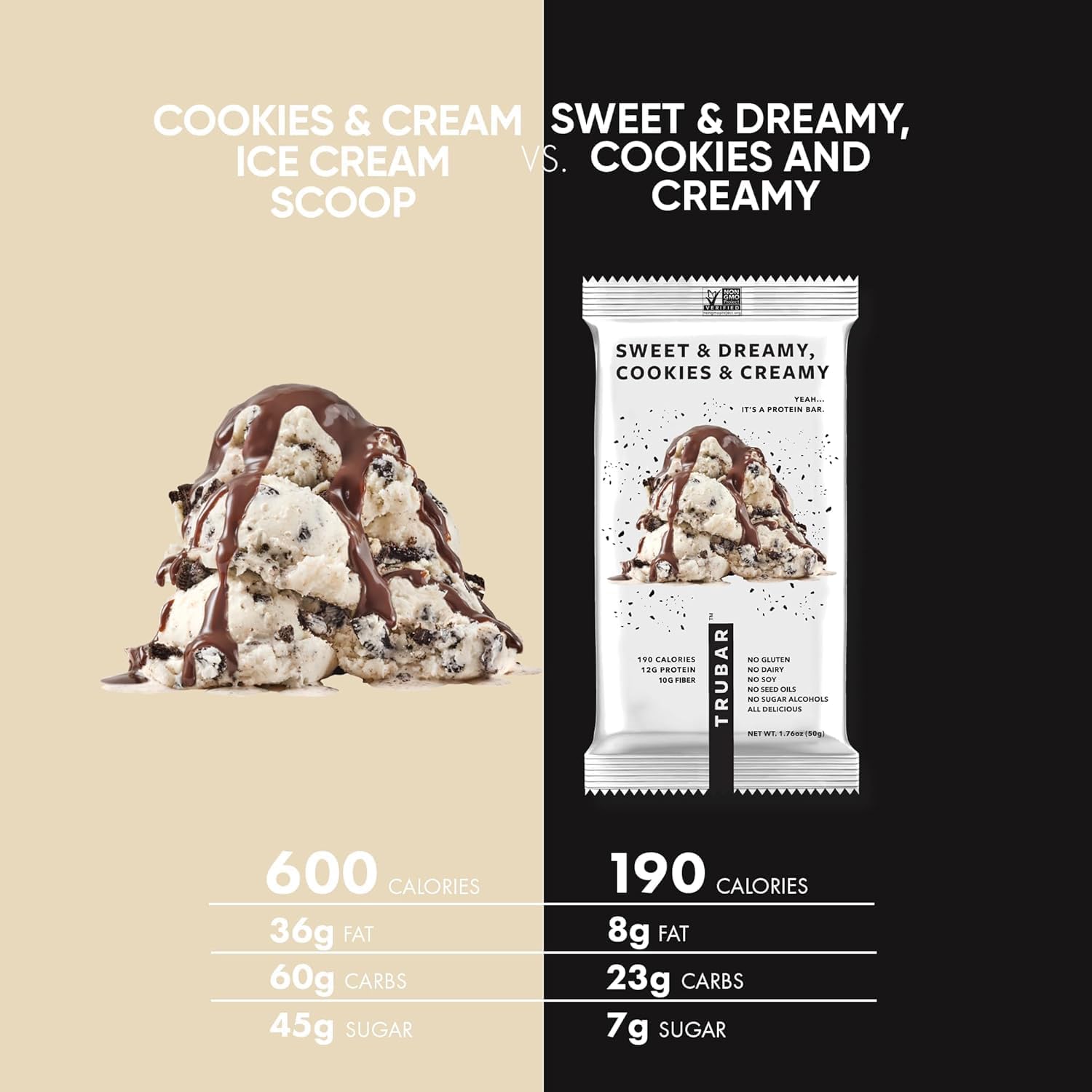 TRUBAR Vegan Protein Bar, Sweet & Dreamy Cookies and Creamy, Gluten Free, Plant Based Protein, Dairy Free, Non GMO, Soy Free, No Sugar Alcohols, 12G Protein, 12G Fiber, 23G Carb, On the Go Snack Bars, 12ct