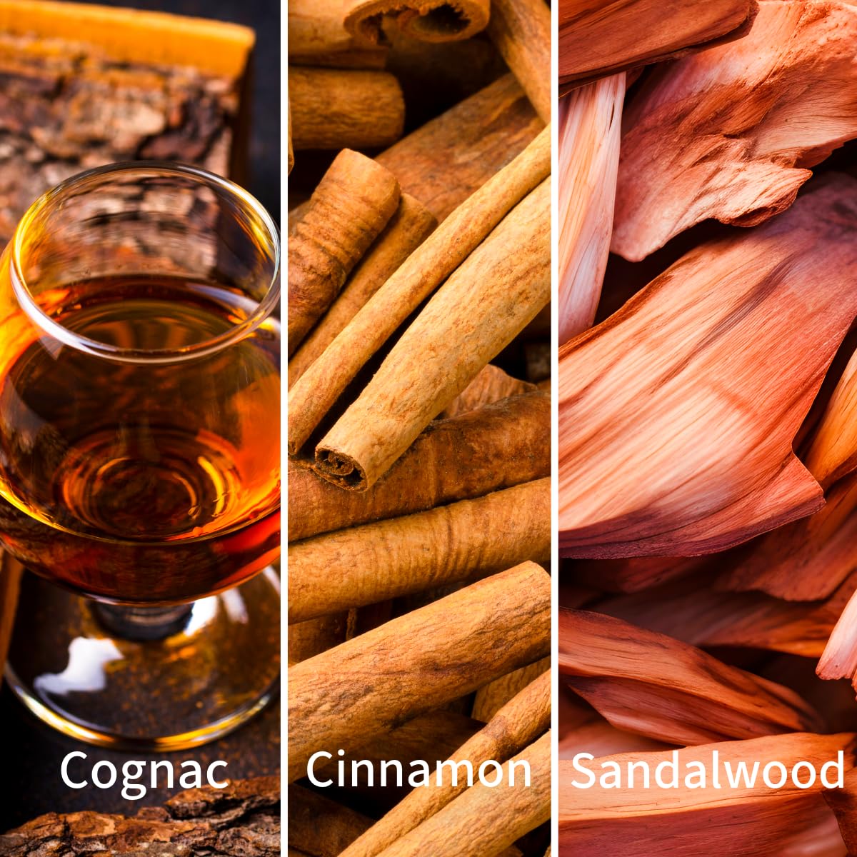 - FRAGRANCE NOTES - Top: Cognac, Rum, Dates | Middle: Cinnamon | Base: Vanilla, Sandalwood