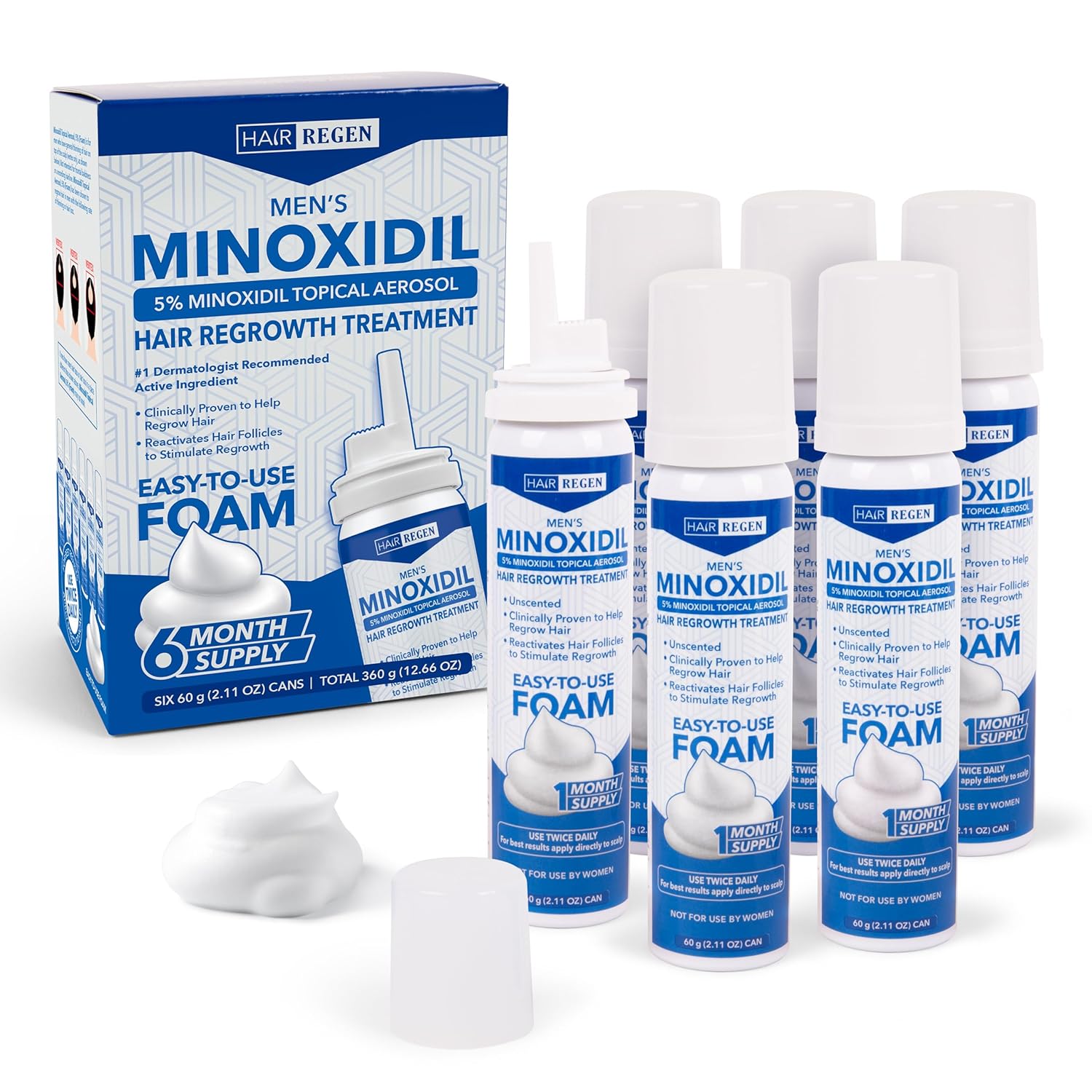 - Includes Men’s Minoxidil Foam 5% with 6 Month Supply is Designed for Consistent Hair Regrowth Treatment providing Complete 6 Pack Coverage for Daily Topical Use