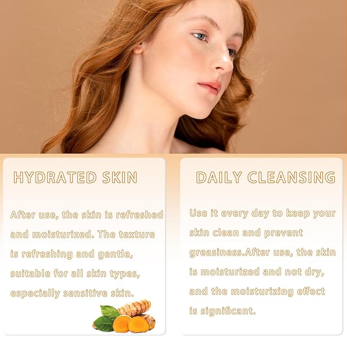 - 【Turmeric cleansing set】: This set is designed for daily use. Its gentle formula helps deep clean pores, cleanse excess oil and impurities, leaving skin in better condition, at the same time, it leaves skin cleaner and healthier