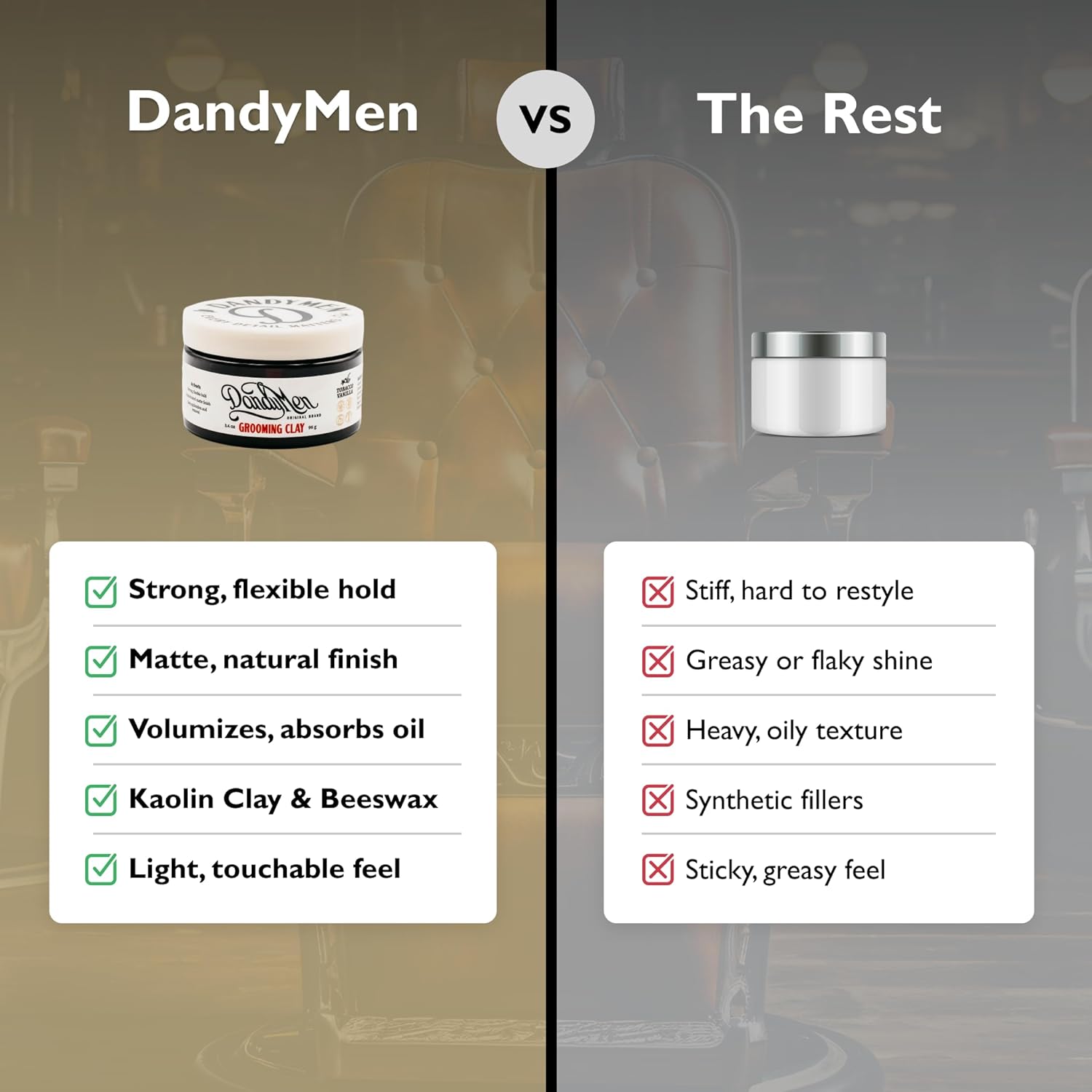 - STRONG, FLEXIBLE HOLD - Create sharp styles or relaxed, textured looks. DandyMen Grooming Clay keeps your hair in place with natural movement that lasts all day.